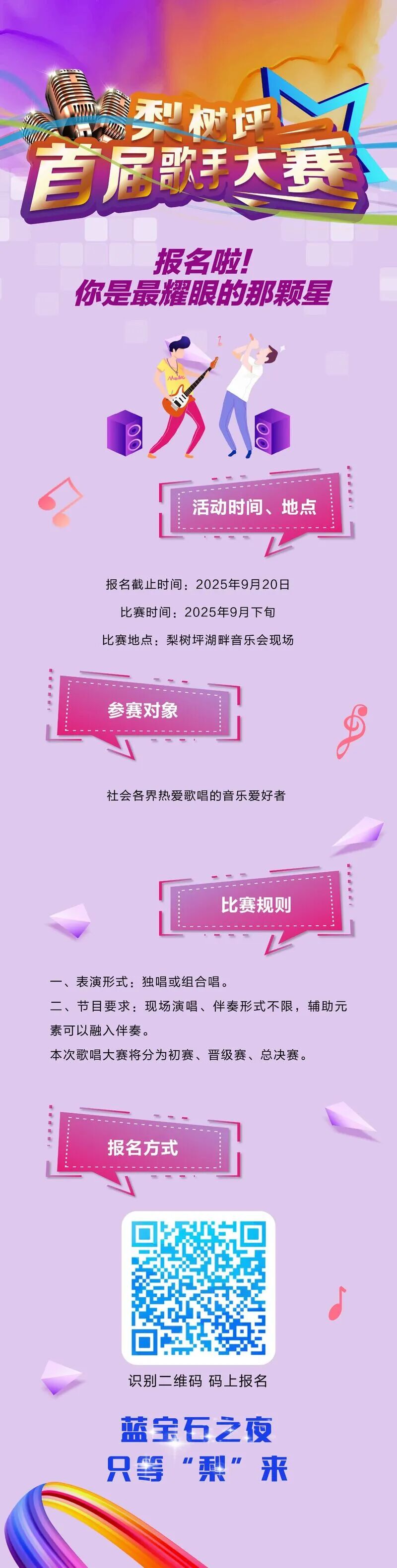 达州高新区梨树坪湿地公园即将掀起一场音乐风暴梨树坪湖畔音乐会即将精彩呈现作为音乐会的重要内容梨树坪首届歌手大赛正式开启报名无论你是实力唱将、校园新星还是怀揣梦想的业余爱好者这里都是你的舞台还等什么这个秋天让梨树坪记住你的旋律